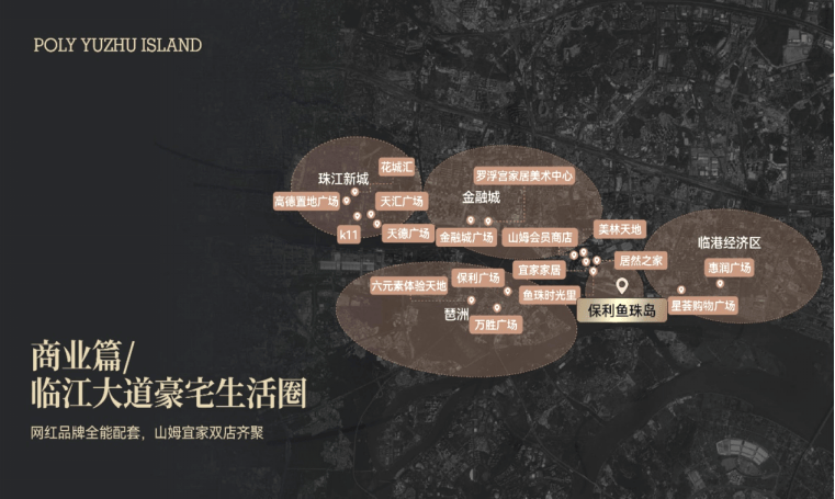 保利鱼珠岛的商业配套,呈现出“综合体+商圈”的双轮驱动模式。项目自身规划的5万平方米特色商业街区,将引入高端餐饮、精品超市必威西汉姆联官网等业态,满足业主日常需求。而周边3公里范围内,美林M·LIVE天地、山姆会员店、盒马鲜生等成熟商圈,则构建了一个“都市生活圈”。